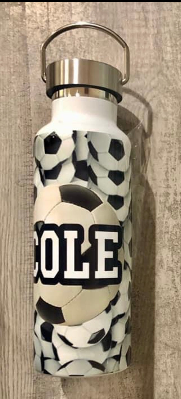 17 oz stainless steel water bottle with handle. Easy to carry with you to school/work. Add any design or photo of your choice.